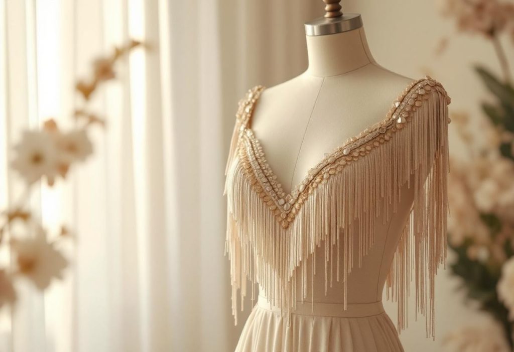 Les franges et paillettes présentes sur ces robes capturent instantanément l’attention. Elles bougent au rythme du corps, offrant un spectacle visuel fascinant qui attire le regard aussi bien sur scène que sur les passerelles de mode actuelles. Cette capacité de la robe charleston à conjuguer mouvement et esthétique continue d’inspirer les designers à travers le monde, invitant ainsi chacun à plongez dans l’univers charleston en robe frangée.